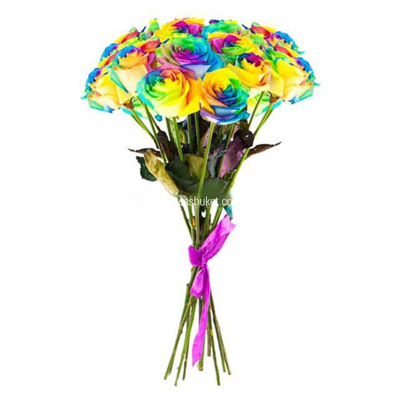 Роза (Эквадор) РАДУЖНАЯ - 15;Лента атласная - 1;