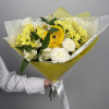 Альстромерия - 2;Гербера - 1;Хризантема кустовая желтая - 2;Лента атласная - 1;Упаковочный материал - 1;Роза кустовая - 2;